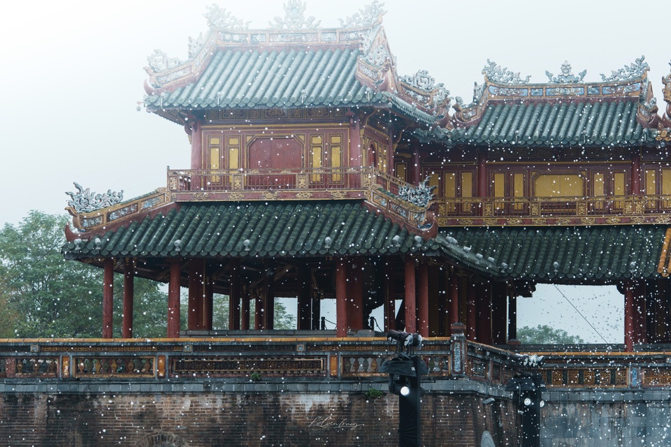 Khung cảnh "tuyết rơi" ở Hoàng thành Huế thu hút sự quan tâm của cộng đồng mạng. Ảnh: Kelvin Long.