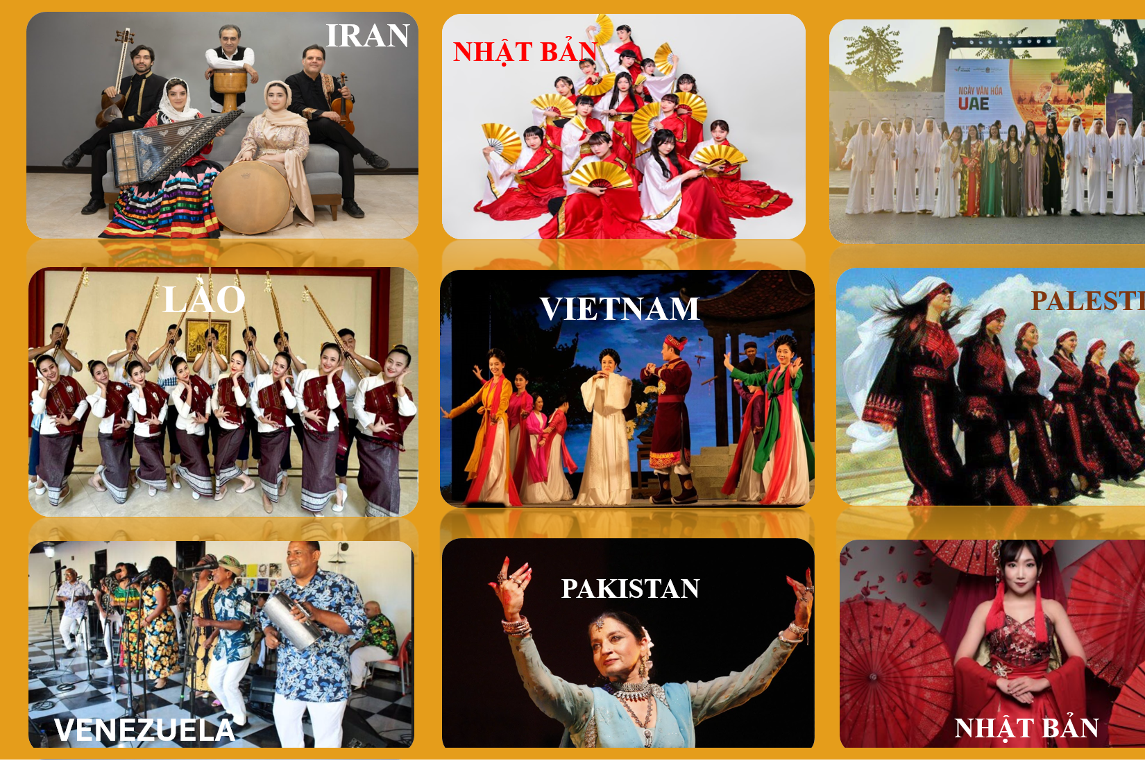 Tại Lễ hội, các không gian văn hoá đa sắc màu được tái hiện sống động: từ những điệu múa truyền thống Á - Âu, trưng bày trang phục và ẩm thực quốc tế, cho đến các tiết mục nghệ thuật đặc sắc của Việt Nam mang thông điệp “Thế giới cùng chung nhịp đập yêu thương”.